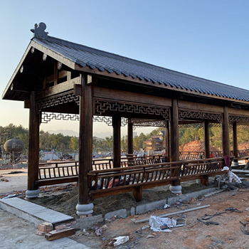 這是一款仿古長(zhǎng)廊,下面是防腐木,上面是小青瓦。材質(zhì)有多種可選擇,有松木、杉木、菠蘿格等多種防腐木。這種仿古長(zhǎng)廊適用于景區(qū)、休閑廣場(chǎng)、新農(nóng)村、學(xué)校等休閑場(chǎng)所使用。