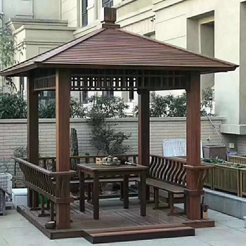防腐木涼亭 > 四角涼亭 ? 四角橫瓦涼亭